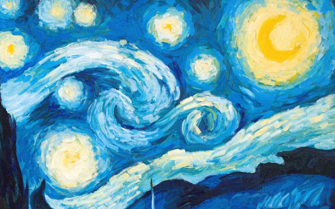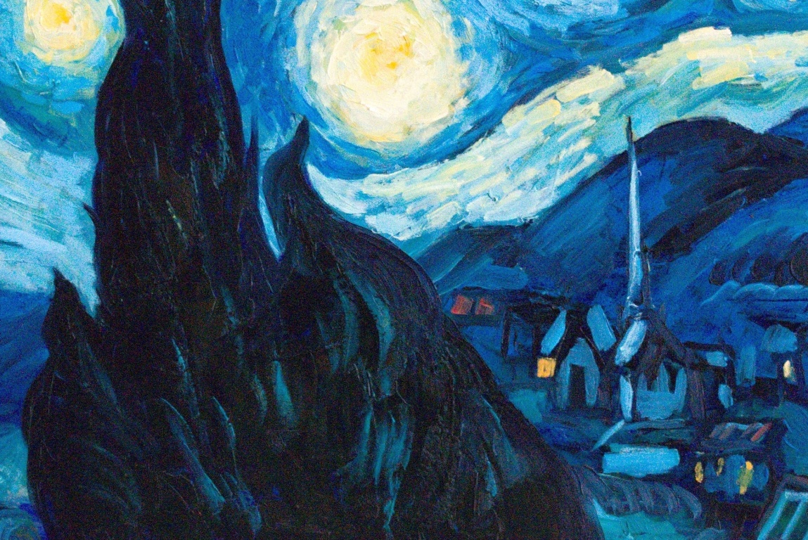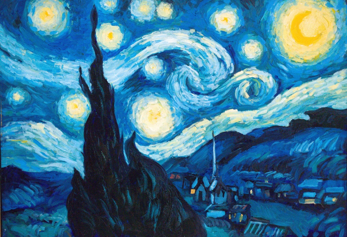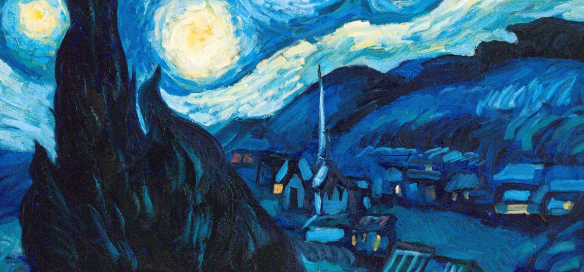"Hvězdná noc" , autorská replika, olej naplátně, 100 x 70 cm
