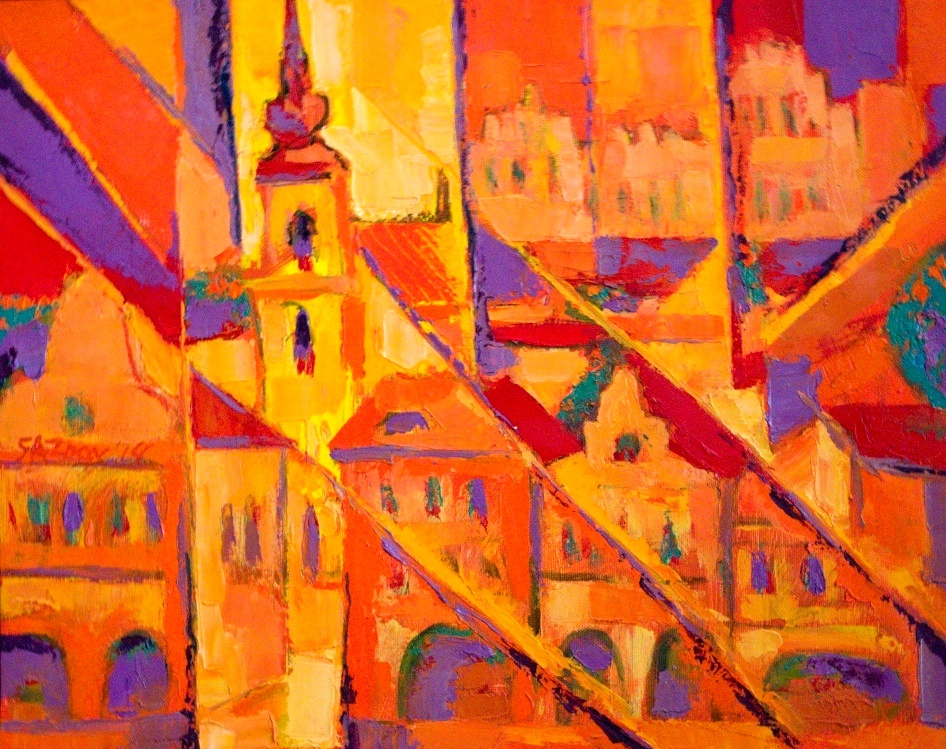originální kubistický  obraz ak.mal.Rumen Sazdov